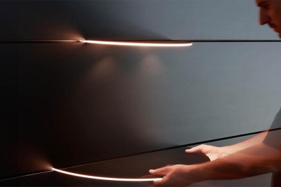 Grade erst in Mailand gezeigt, ist mit an Bord ist natürlich unser ‚dot injection panel‘, die großartige Innovation hinter unserer Flächenlicht-Technologie, mit der wir große Oberflächen perfekt hinterleuchten und Objekte mit im Material verborgenen Licht in Szene setzen.