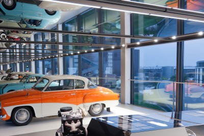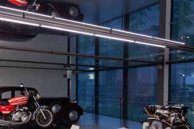 Für die Umsetzung des architektonisch anspruchsvollen Konzeptes einer Sonderausstellung im Zeithaus der Autostadt Wolfsburg galt es, ohne Eingriff in die vorhandene und teilverspiegelte Deckenkonstruktion, zusätzliche Leuchten einzubringen. Der Kunde legte dabei vor allem Wert auf die Vermeidung ungewollter Reflektionen in den hochglänzenden Lacken der ausgestellten Automobile. Nach Abwägung vorhandener Technologien wurden eigene Sonderleuchten entwickelt, die über eine speziell geformte Optik bei zugleich hohem optischen Wirkungsgrad die einzelnen LEDs der Leuchte zu einer durchgehenden Linie verschmelzen lassen. Die Wahl fiel auf LEDs mit einem CRIvon > 96.