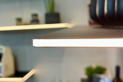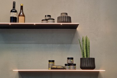 Frei platzierbare LED-Spots, die nach oben oder unten strahlen, ermöglichen eine präzise Akzentuierung. Alternativ stehen homogene Leuchtflächen zur Verfügung, die Objekte maßgeschneidert ins richtige Licht rücken.