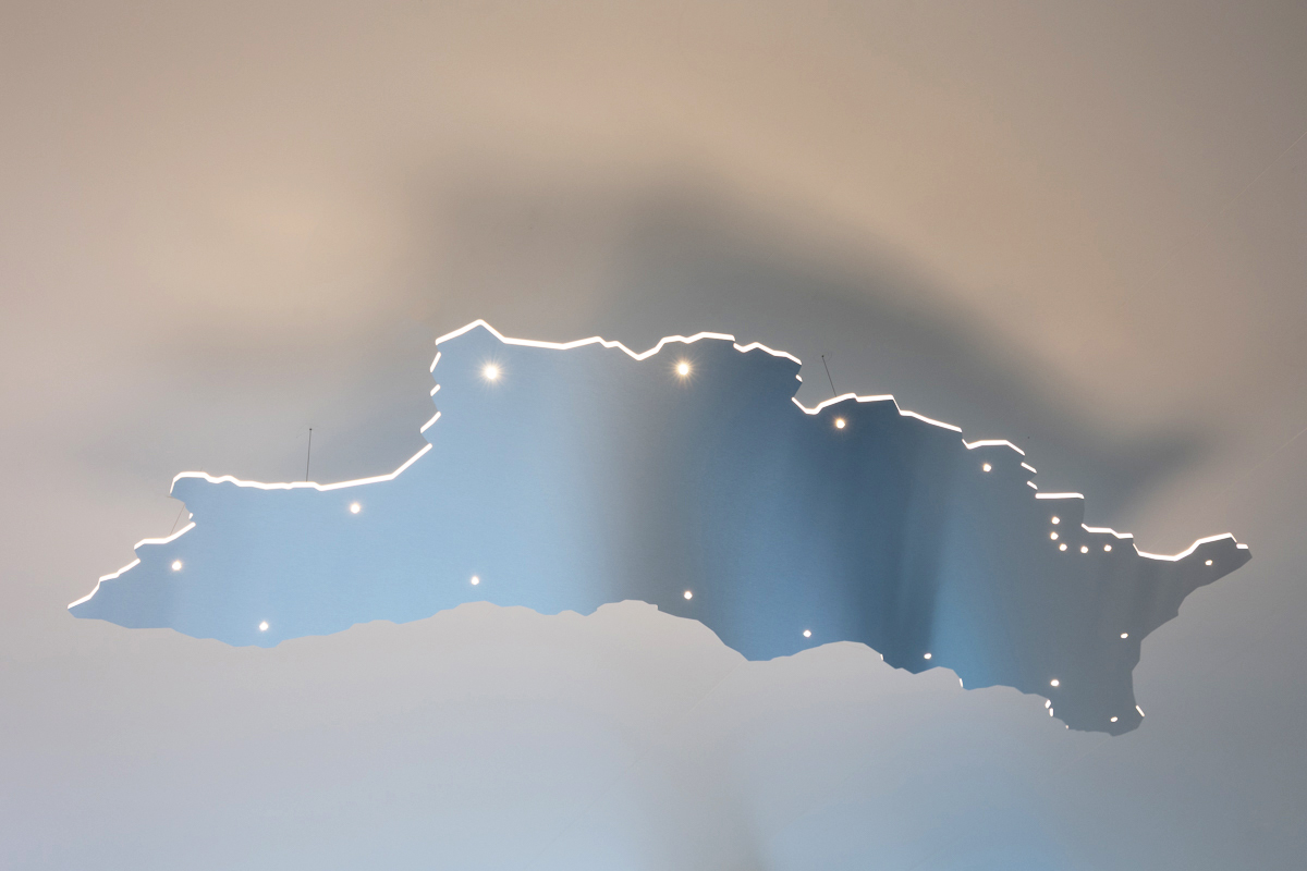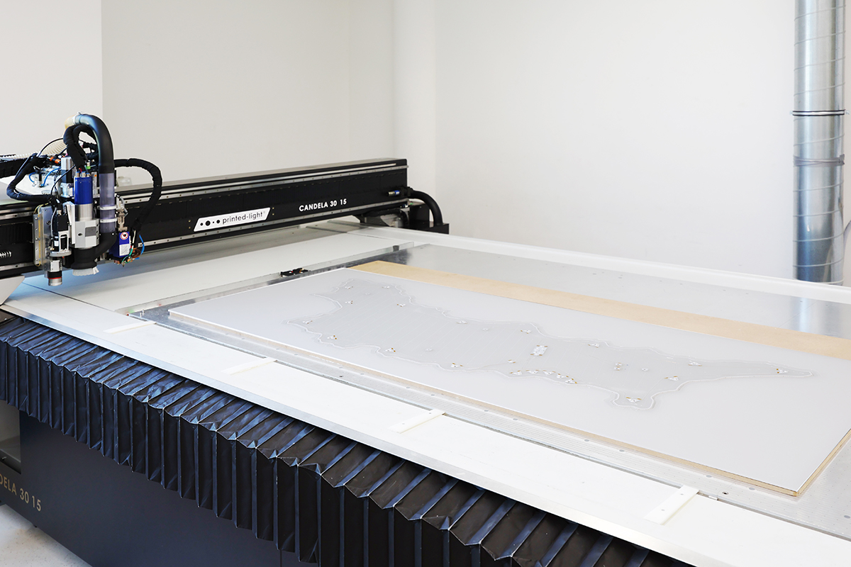 Our printed-light technology made it possible to translate the exact shape of the peninsula into a luminous design object.